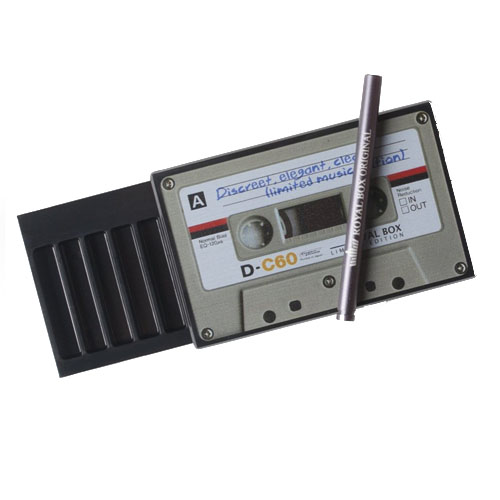 La Royal Box avec design cassette est un set à priser complet qui ressemble à une cassette audio classique des années 80. Un clin d'œil au passé avec une fonction pratique. Avec des dimensions de 86x54x8mm, ce set se glisse facilement dans ton portefeuille, comme une carte bancaire.