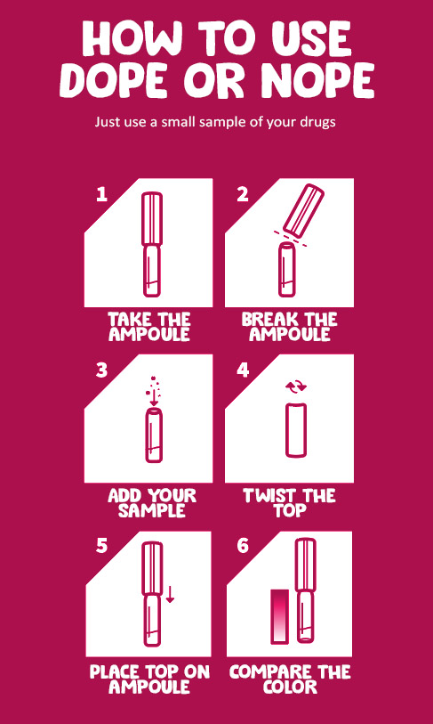 DOPE OR NOPE test kits are incredibly easy to use. Follow these steps to find out the contents of your drugs in no time: