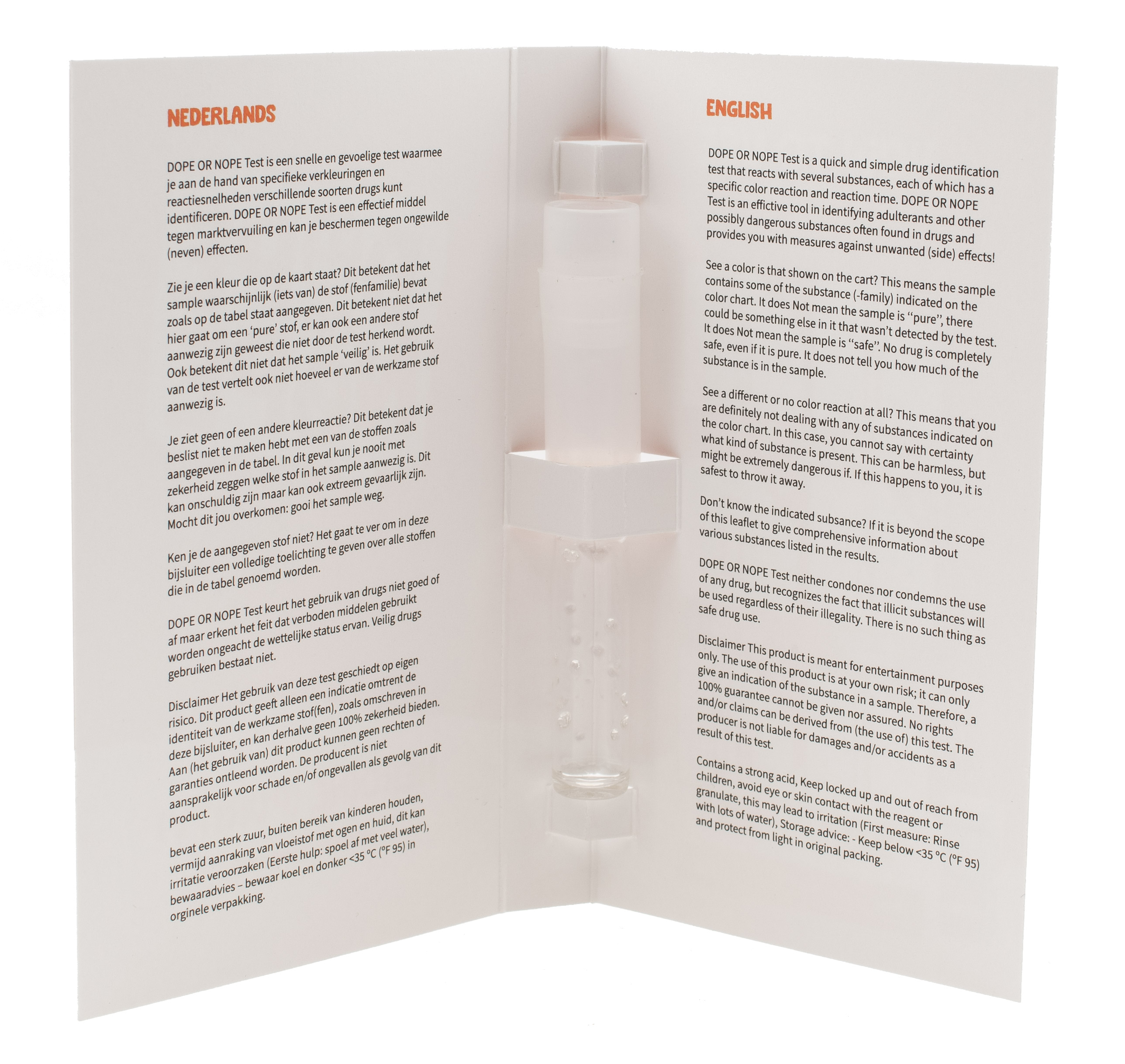 Use of this test is at your own risk. This product only provides an indication of the identity of the active substance (s), as described on this page, and can therefore not offer 100% certainty. No rights or guarantees can be derived from (the use of) this product. The producer is not liable for damage and / or accidents caused by this product.