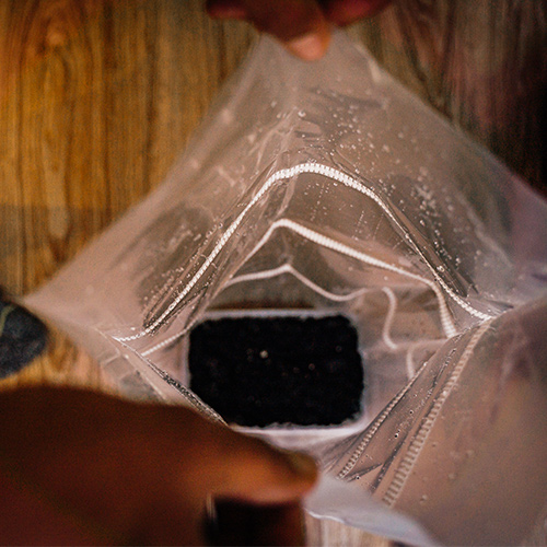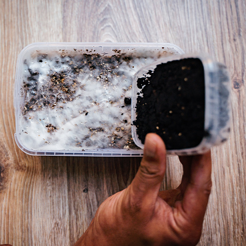 4. Place the box of mycelium in the moisture bag and spray the inside of the bag to keep it moist.