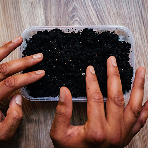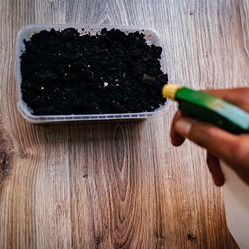 3. Spray the casing soil to make it moist, but not soaking wet.