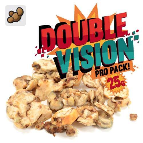 The Double Vision Pro Pack is our most powerful truffle mix and contains 25 grams of the two strongest varieties: Hollandia and Utopia. This combination is specifically developed for very experienced users looking for an extreme psychedelic journey. This product is absolutely not suitable for beginners or people with limited trip experience. Double Vision stands for exactly that: seeing double, feeling double, and overwhelming intensity.