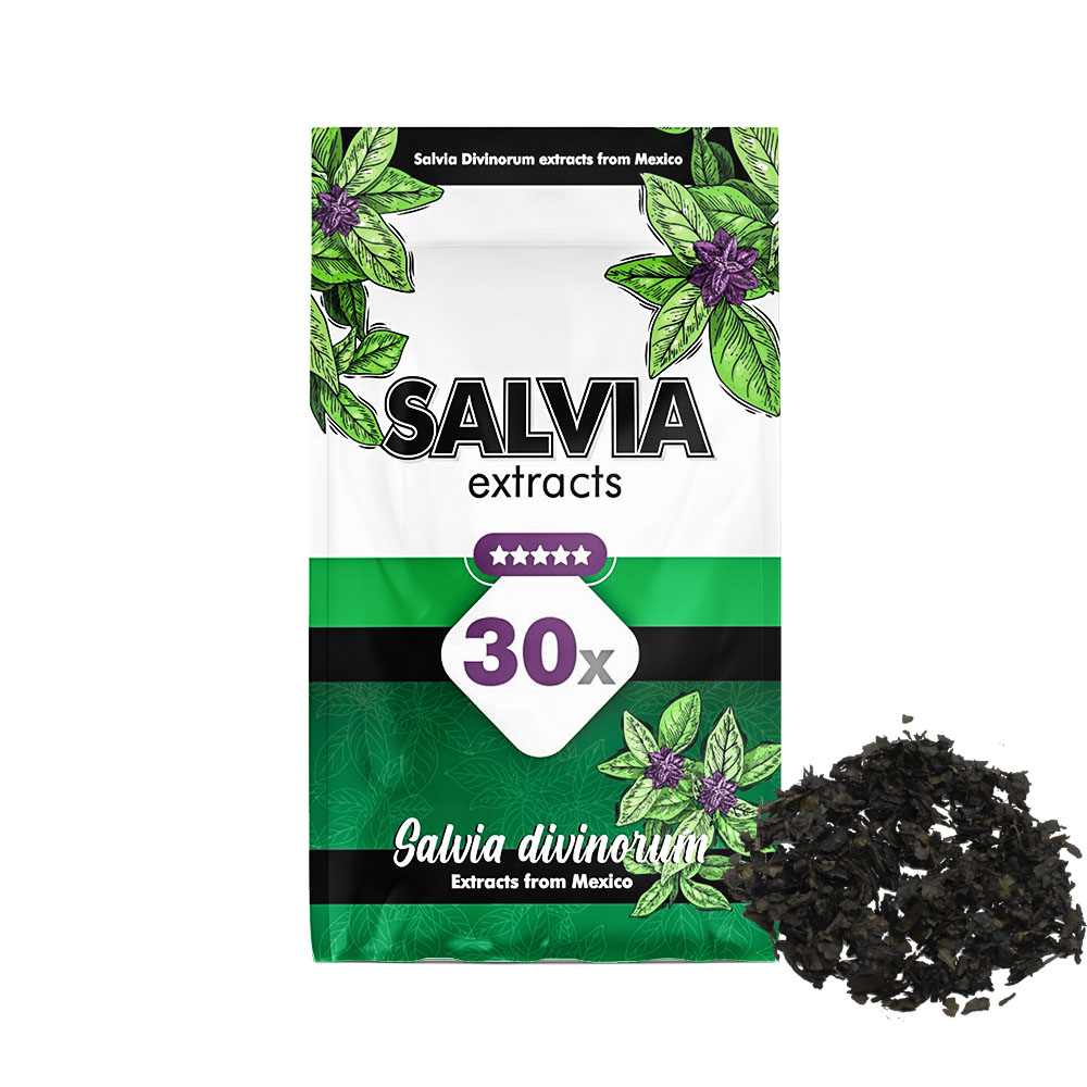 Our 30X salvia divinorum extract contains 108mg of pure salvinorin-A per gram of extract which is extracted from the salvia plant and then redeposited back onto dried salvia leaves. Our skilled chemists use a standardized method, which costs a little more than non-standardized methods, but means you will find no extra plant matter which can be harmful to your lungs. Salvia 30X Extract is not a liquid.